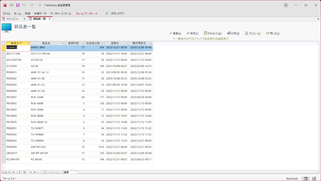 「部品表作成」画面で登録済みの製品のデータです。