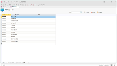 | 新規 | カーソルを表の一番下の空行に移動し、新規レコードを入力できる状態にします。 |