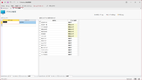 - このアクセス権限の管理はテーブルを直接編集することで書き換え可能なレベルのものです。Accessパワーユーザーへの対処までは考慮されていません。
