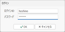 - はじめてアクセス権限を設定した場合は、本アプリケーション再起動後にそれらの設定が反映されます。起動直後に下図のような「ログイン」画面が表示されるようになりますので、ここで所定の「ログインID」と「パスワード」を入力して[OK]ボタンをクリックします。