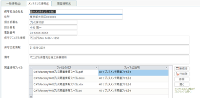 この画面は、設備に関するデータのうち、メンテナンスに関する情報を登録したり、編集したりするための画面です。