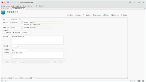 - ”故障修理”を選択すると、下欄の「故障要因」などが入力できます。逆に「定期保守ID」は入力不可となります。