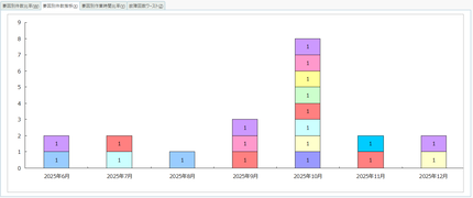 故障要因ごとの発生件数を年月別に棒グラフにしたもの