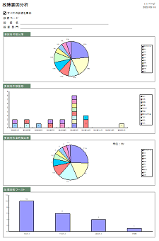| PDF出力 | 画面上の各タブの4つのグラフを1つにまとめて出力する「故障要因分析」帳票をPDFファイルに出力します。 |