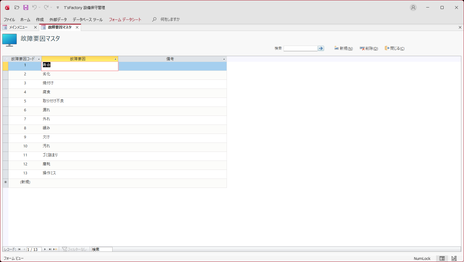 故障要因分析を行う際の故障要因マスタデータを登録・編集する画面です。