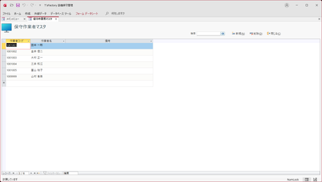 設備の保守作業を行う作業者マスタデータを登録・編集する画面です。