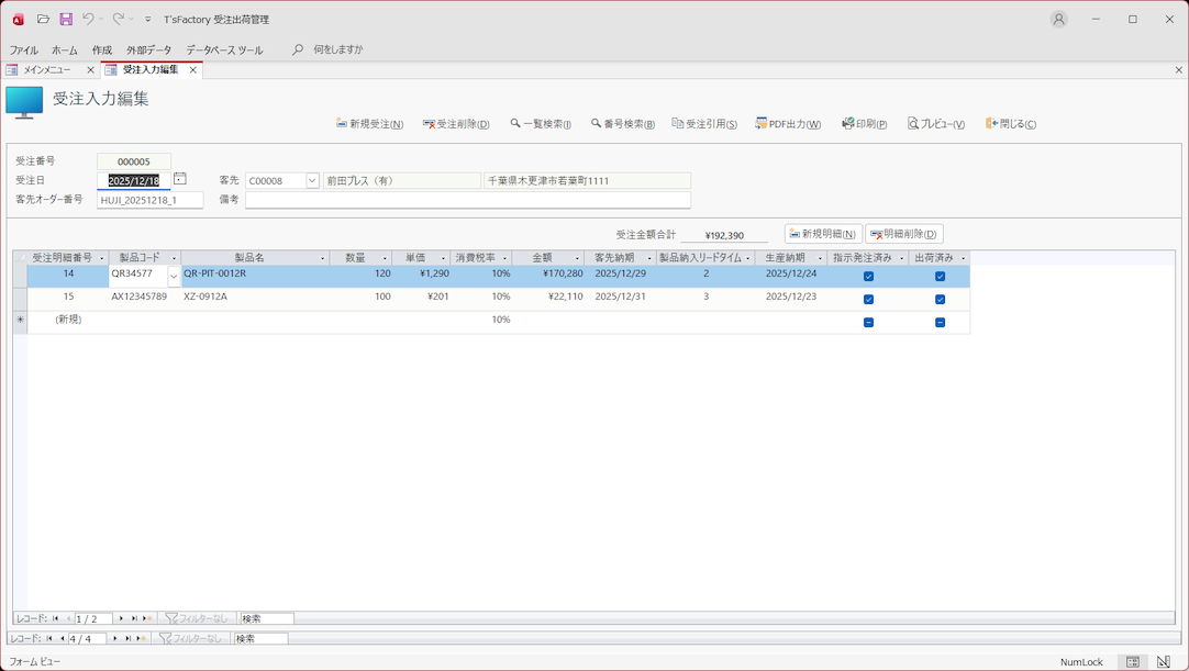 T'sFactory 受注出荷管理  Ver 6.0
