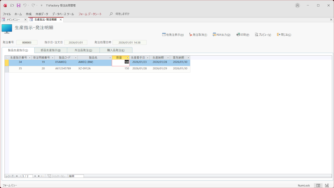 • 生産指示・発注明細