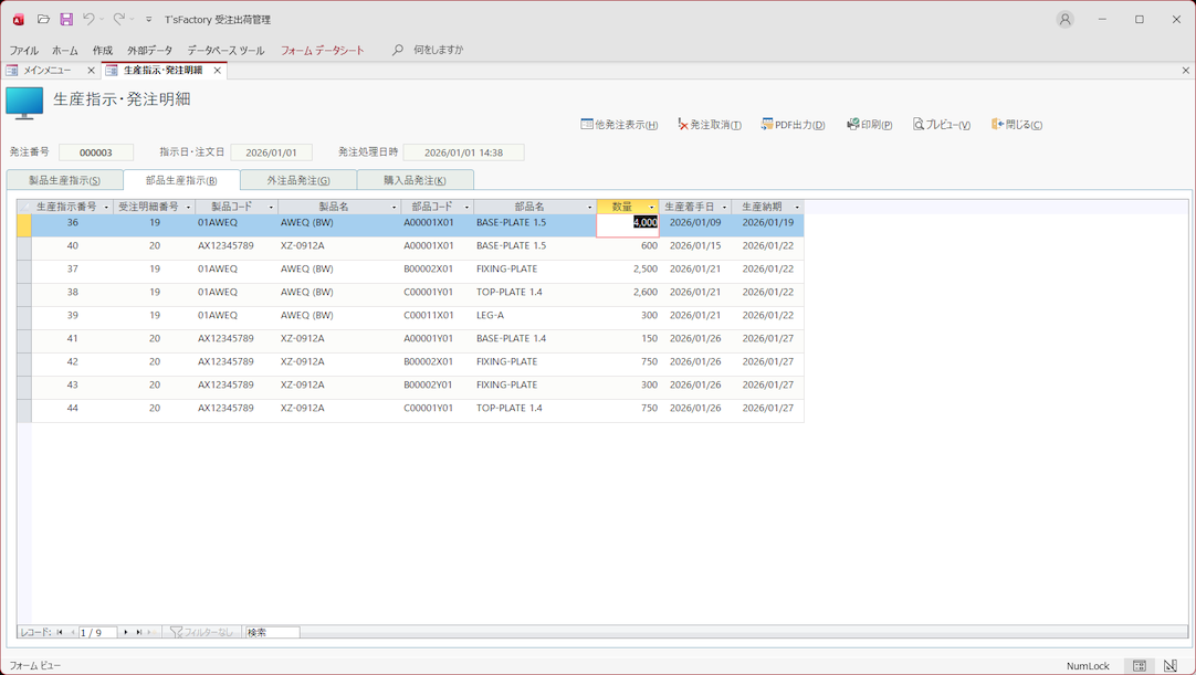 • 部品生産指示書(帳票+PDF)