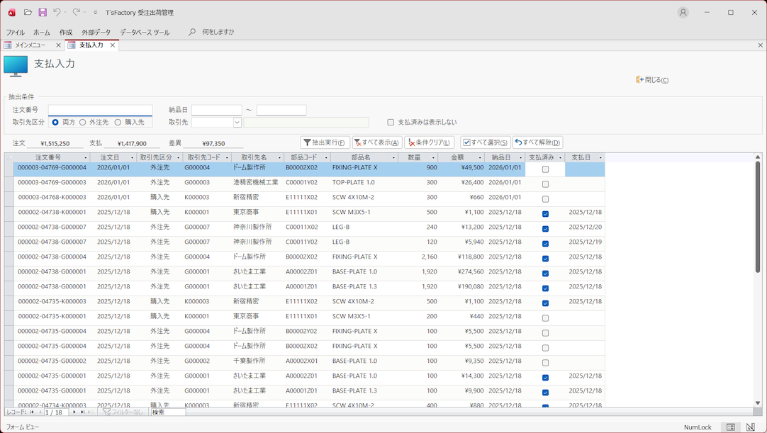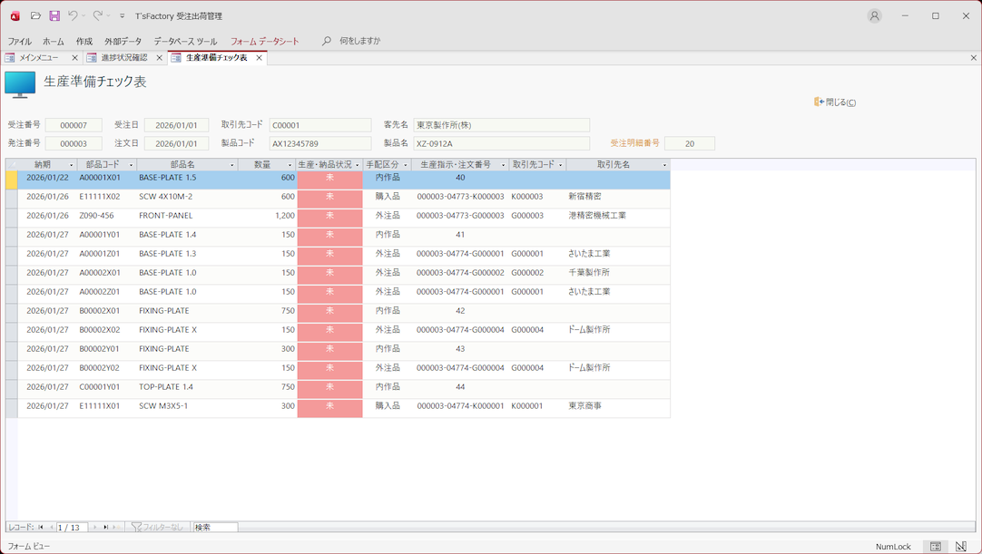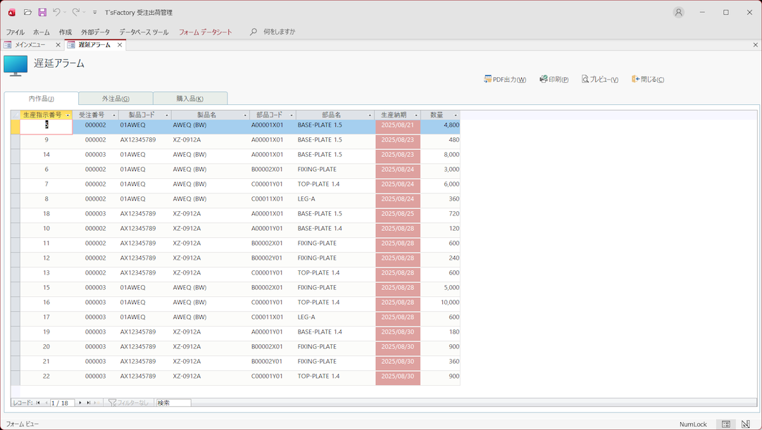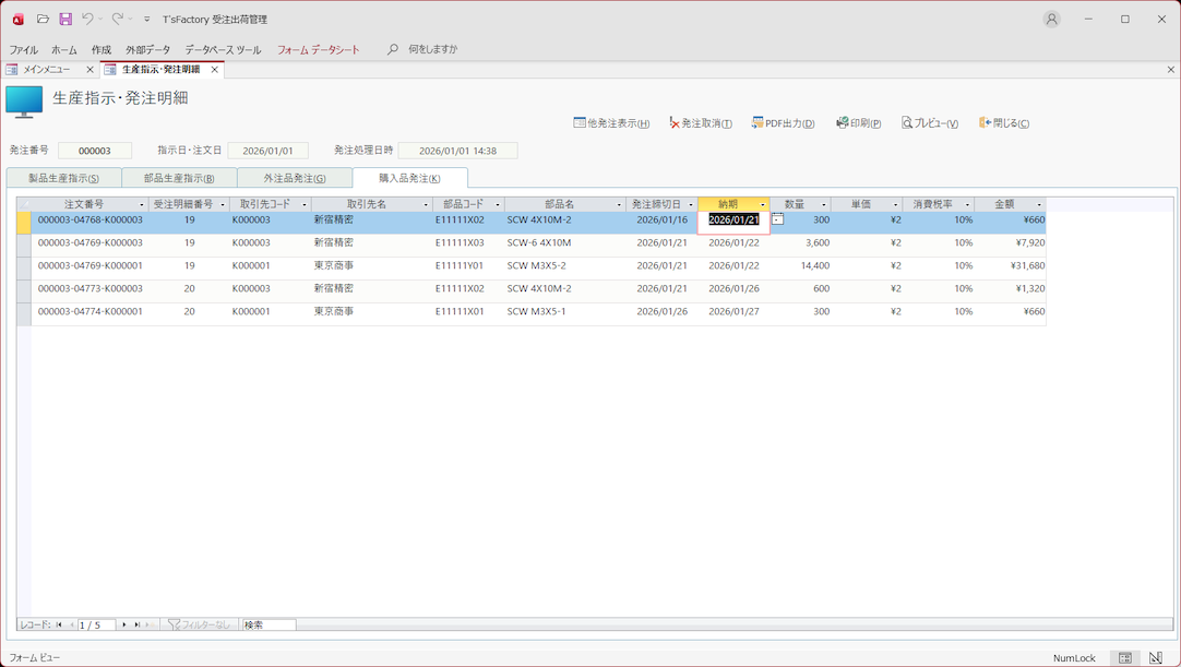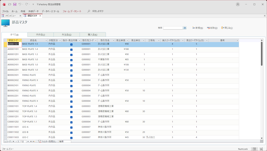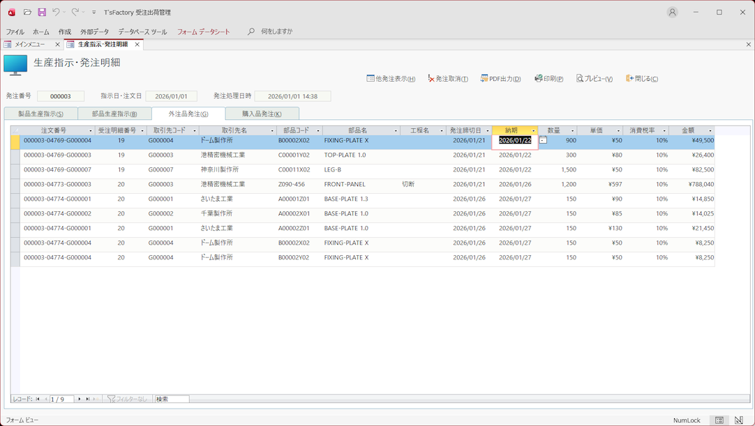 受注から発注・納品・出荷データを管理! 内作品や外注品・購入品の指示/発注!