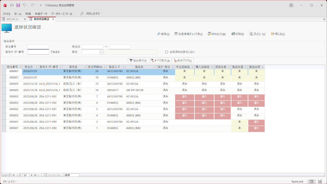 • 製品別受注一覧表
