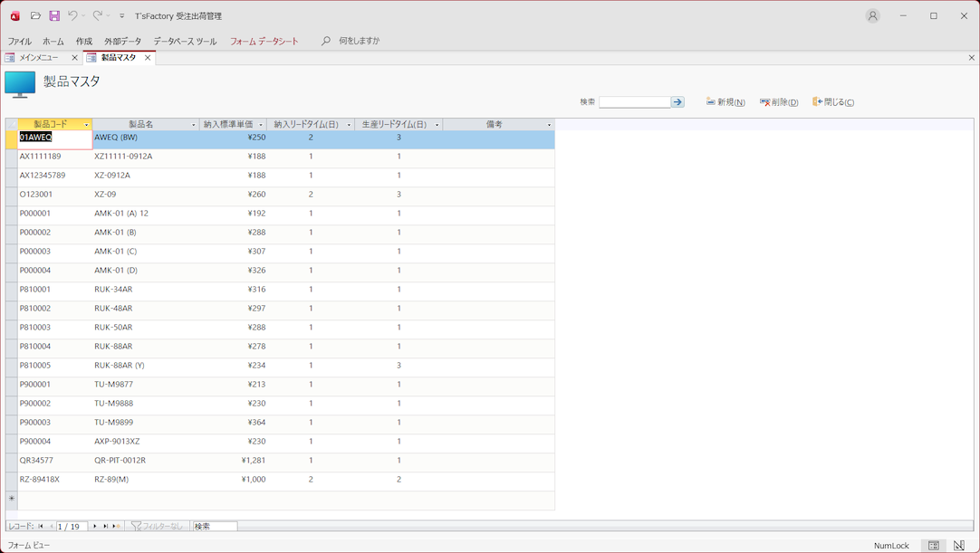 • 製品マスタ