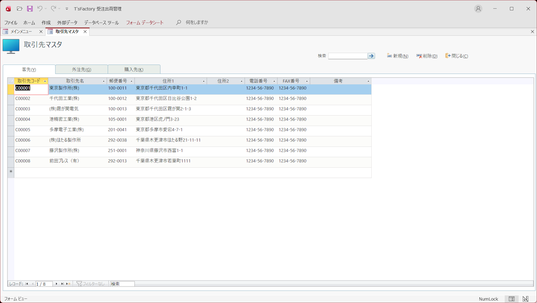 • 取引先マスタ