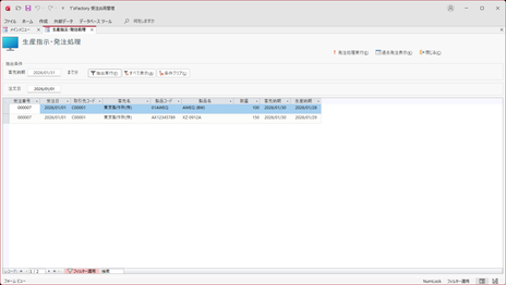 生産指示・発注処理画面