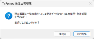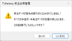 ※その際、事前に[抽出実行]ボタンで客先納期の絞り込みが行われていない場合には、続けて次のようなメッセージが表示されます。念のため再確認してから[はい]ボタンをクリックしてください。