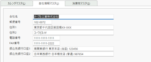ここで登録されたデータは、客先に請求書を発行したりする際、その発行元データとして使われます。