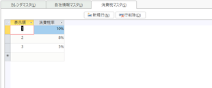 - この値が最も小さい消費税率が既定値として使われますので、消費税率が変わったときなど、今現在の消費税率を先頭に設定しておくと入力が楽になります。