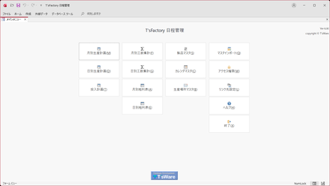 | 製品マスタ | 製品マスタデータを入力・編集する「製品マスタ」画面を表示します。 |
