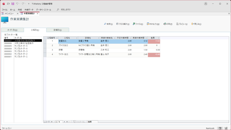 作業実績集計画面 工程別タブ