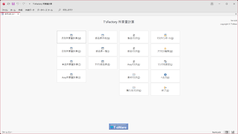| 部品マスタ | 部品マスタデータを入力・編集する「部品マスタ」画面を表示します。 |