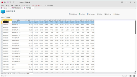 - これによって、生産計画に基づく部品別の所要量が計算され、「月別所要量」画面として一覧表示されます。なお、この画面のデータを直接編集することはできません。