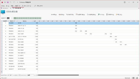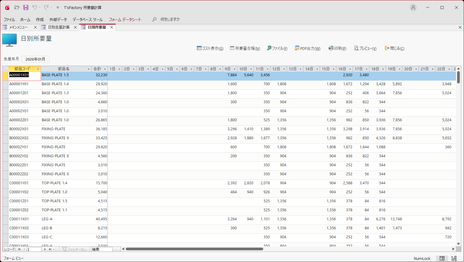 - これによって、生産計画に基づく部品別の所要量が計算され、「日別所要量」画面として一覧表示されます。なお、この画面のデータを直接編集することはできません。