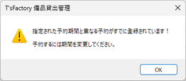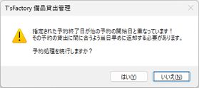 - 指定された予約終了日が他の予約の開始日と重なっている場合、予約はできますがその旨の確認メッセージが表示されます。