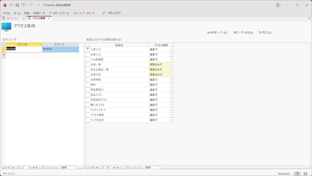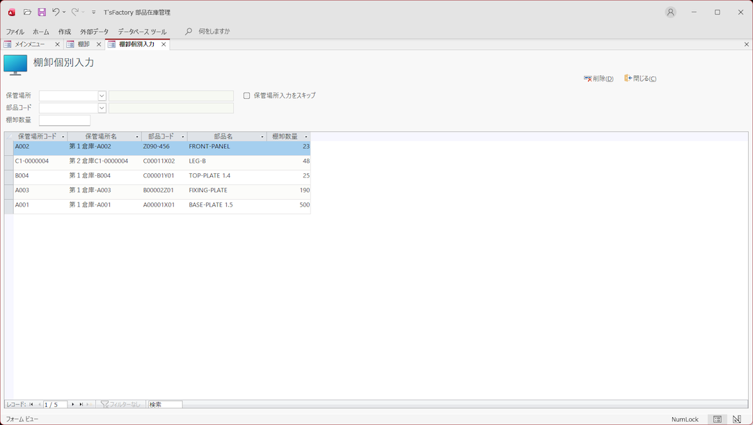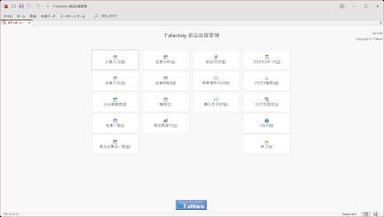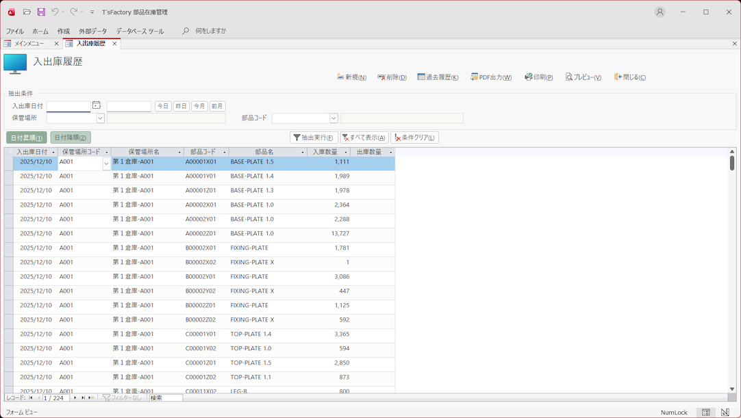 本アプリケーションは、製造業において、最終製品あるいは納品する最終部品の製作に必要な、「部品」の入出庫や在庫を管理するためのデータベースアプリケーションです。