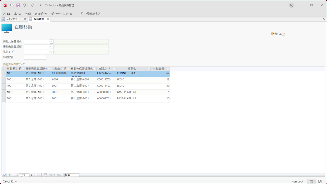 - 特定の部品をある保管場所から別の保管場所にひとつの画面で簡単に移動させることができます。