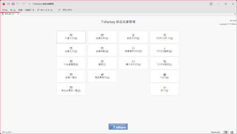 | 部品マスタ | 部品マスタデータを入力・編集する「部品マスタ」画面を表示します。 |
